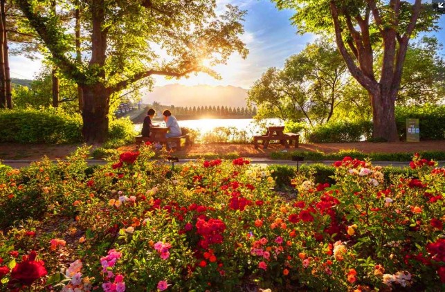 호숫가를 따라 형형색색의 장미가 피어나 물과 꽃의 색이 어우러져 아름다운 풍경을 연출합니다. 붐비는 인파 대신 여유로운 산책을 즐기며 장미를 감상할 수 있어 조용한 나들이를 원하는 분들에게 추천합니다. 피크닉 매트만 챙겨 오면 하루 종일 편안하게 머물 수 있는 편안한 공간입니다.